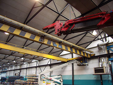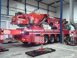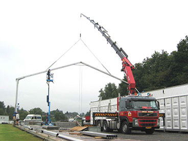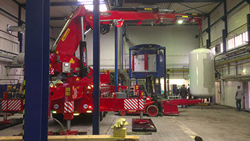 Zeer compacte, en wendbare telescoopkraan uitgerust met verschillende extra hulpstukken om ook in hallen of onder constructies met beperkte hijsruimte te kunnen manoeuvreren.