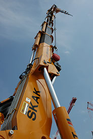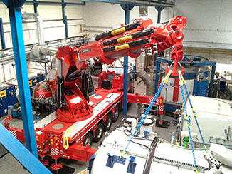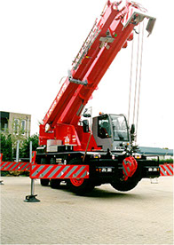 Het betreft een autolaadkraan met zeer speciale eigenschappen. De kraan staat op een 5 asser truckchassis waarvan 3 assen gestuurd zijn.