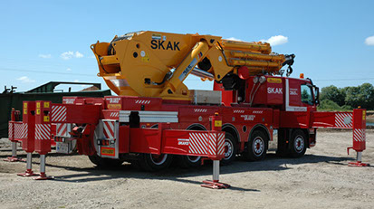 Maximaal 25 mtr. lange hoofdmast. Zeer wendbaar en divers in te zetten De kraan is gemonteerd op een 3 assige Volvo FM12 trekker. (3 assen gestuurd).