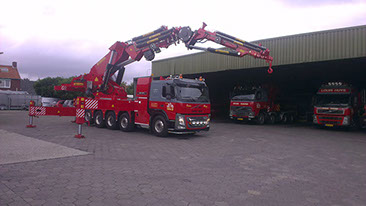 De kraan is gemonteerd op een 3 assige Volvo FM 12 trekker. Flexibel inzetbare kraan, voor b.v. het verplaatsen van kantoor- en materiaalunits, omzetten van machines in fabriekshallen, inhangen van bovenloopkranen, opstellen van constructies enz.